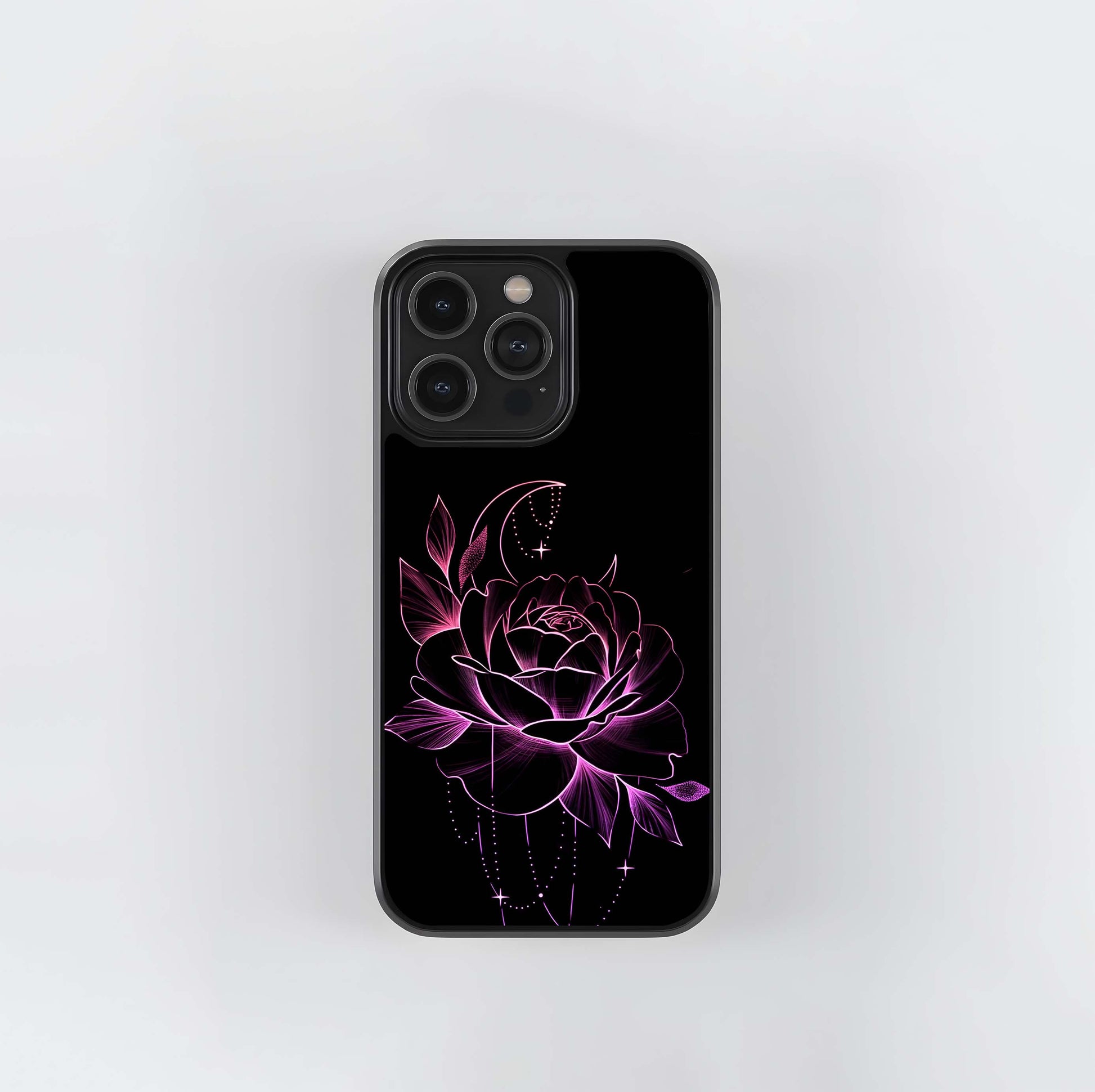 Neon Pink Rose with Crescent Moon Glass Case
