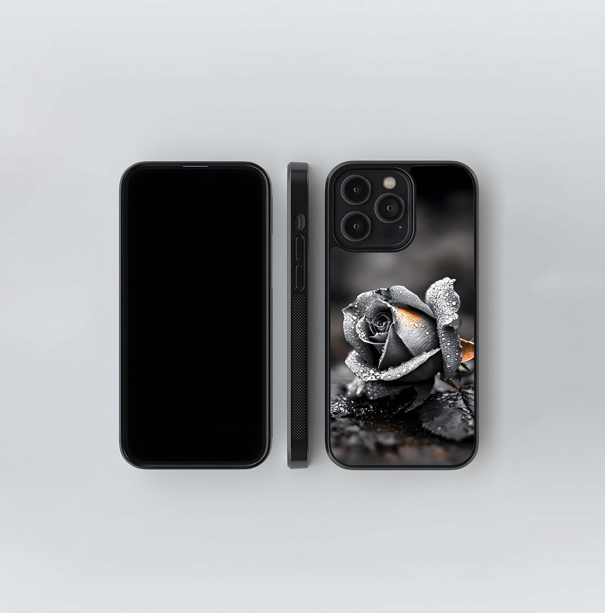 Monochrome Rose with Amber Glow Glass Case