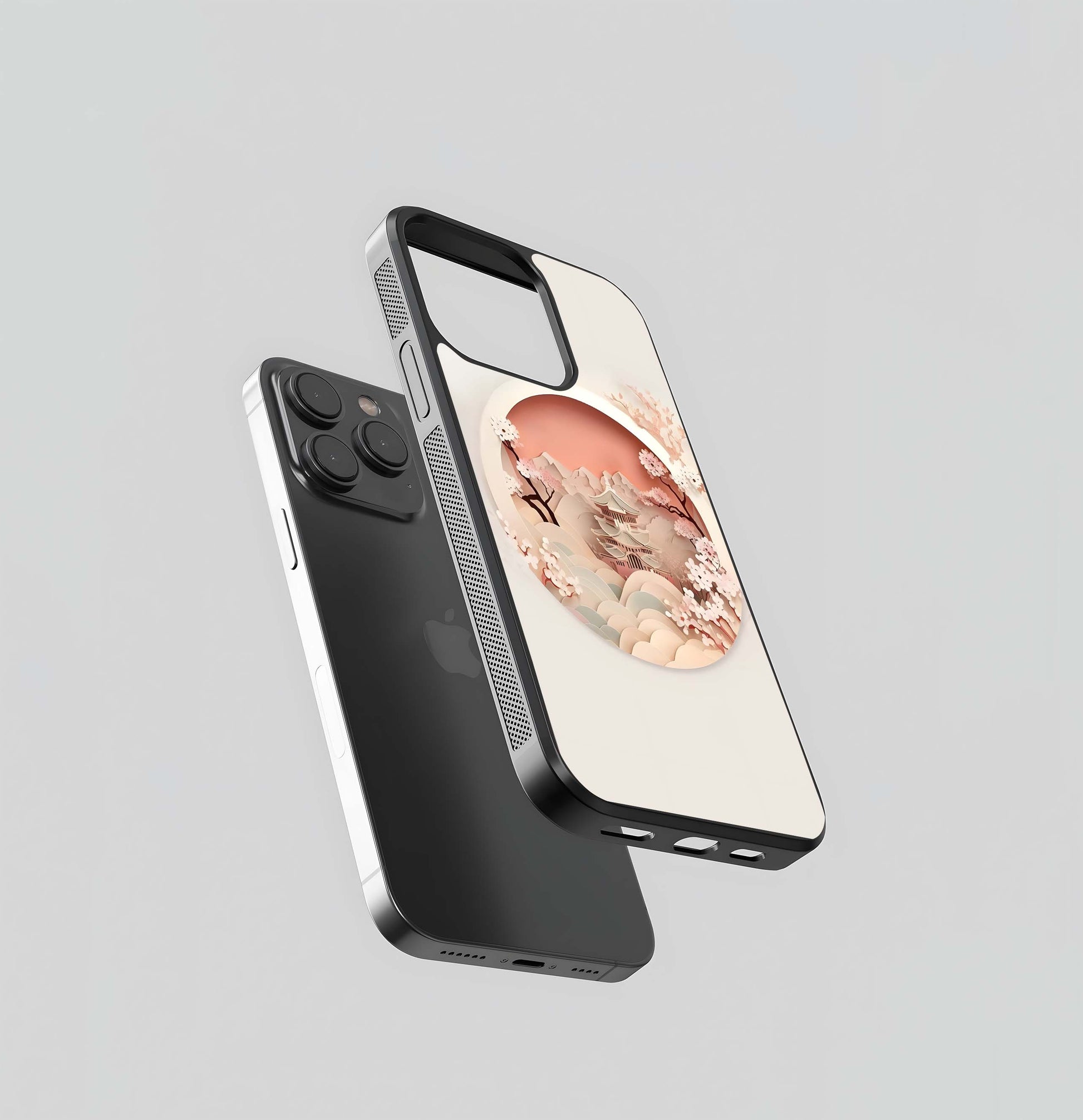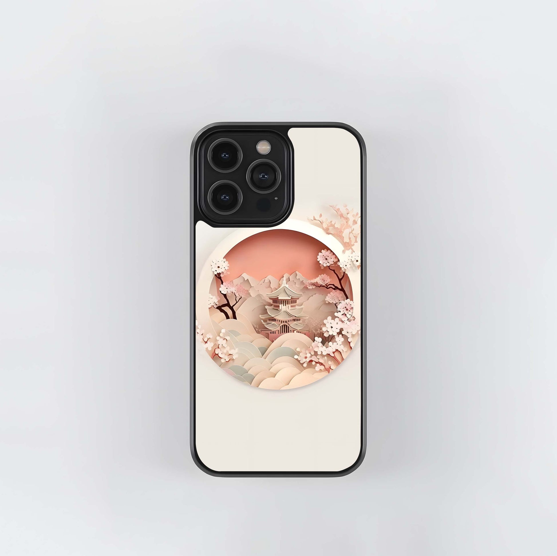 Paper-Cut Japanese Pagoda and Cherry Blossoms Glass Case