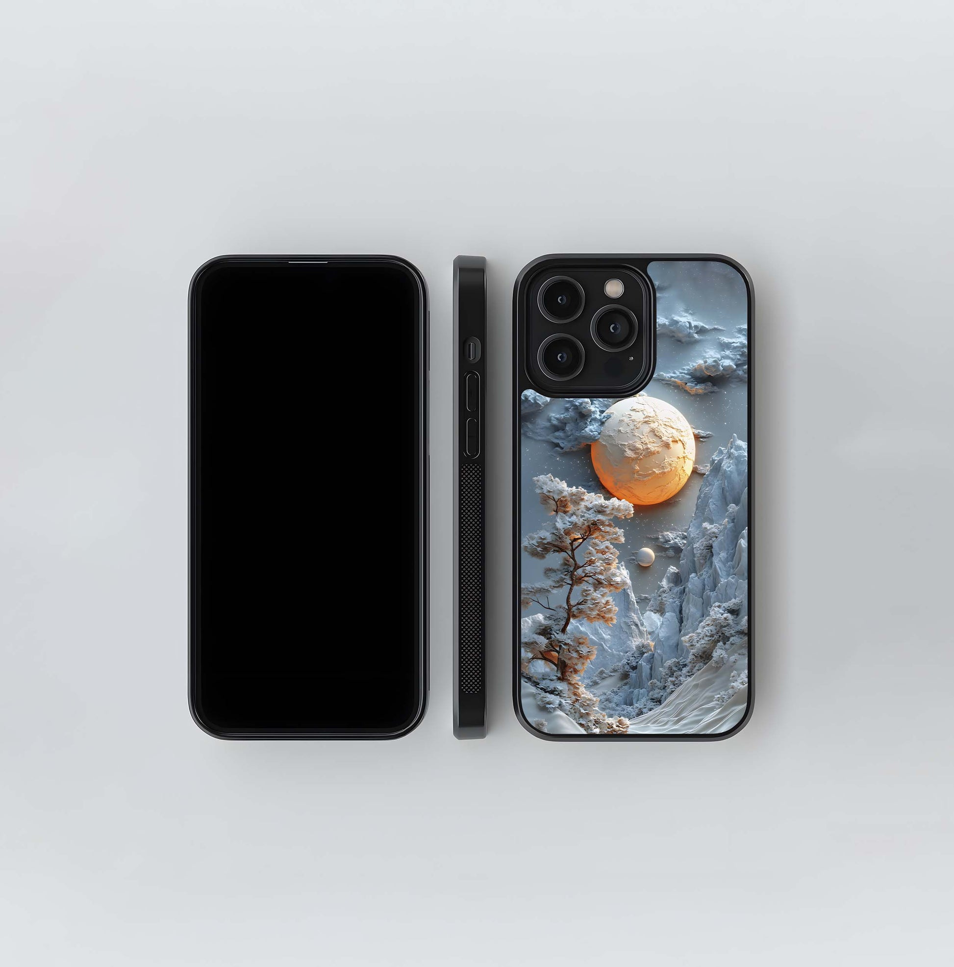 Winter Moon Relief Sculpture Glass Case