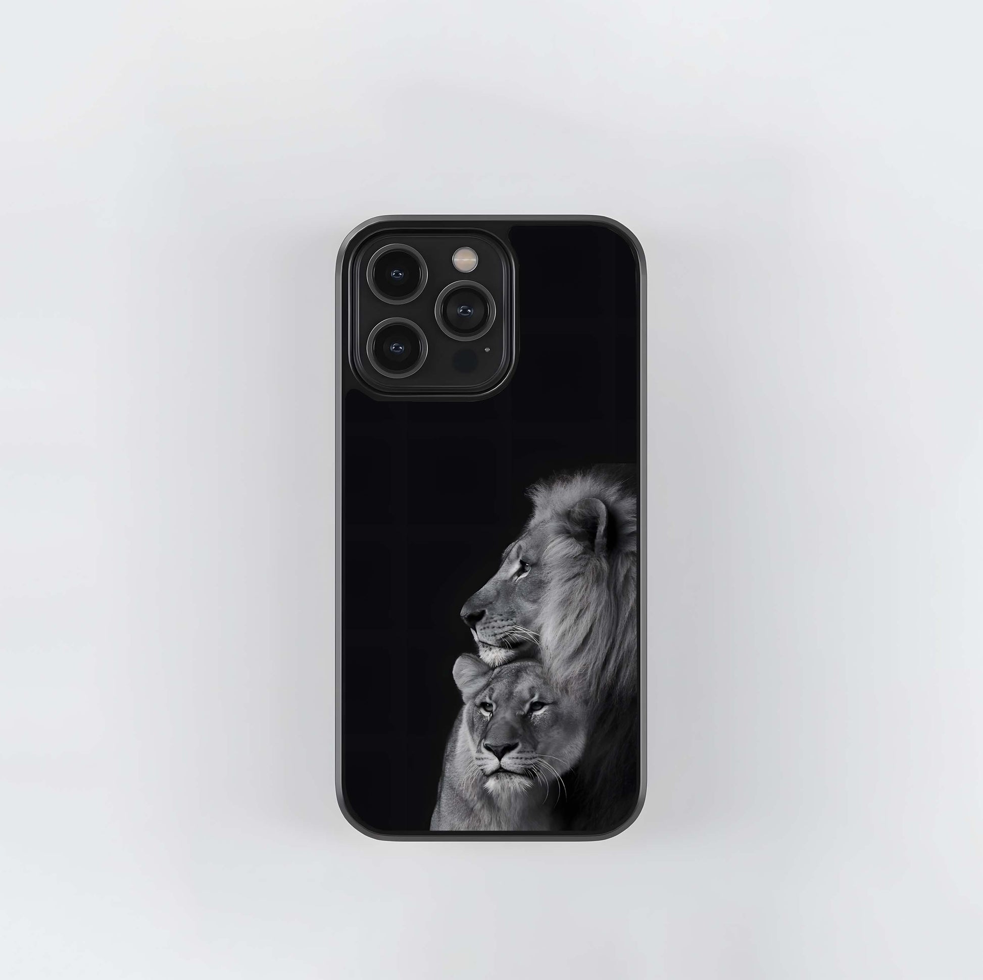 Lion and Lioness Portrait Glass Case