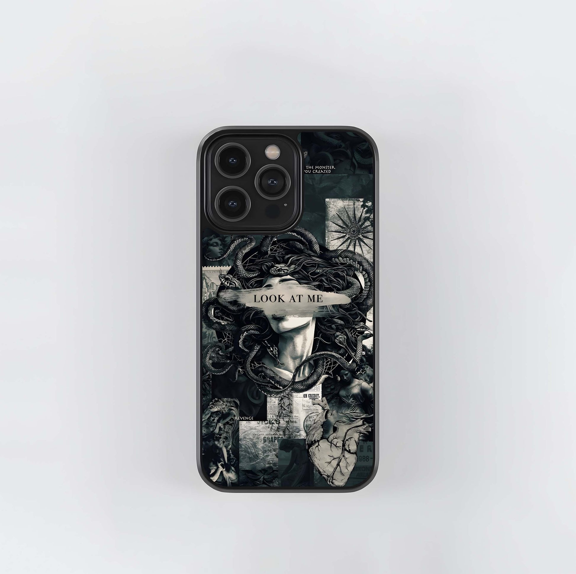 Monochrome Medusa Collage Glass Case