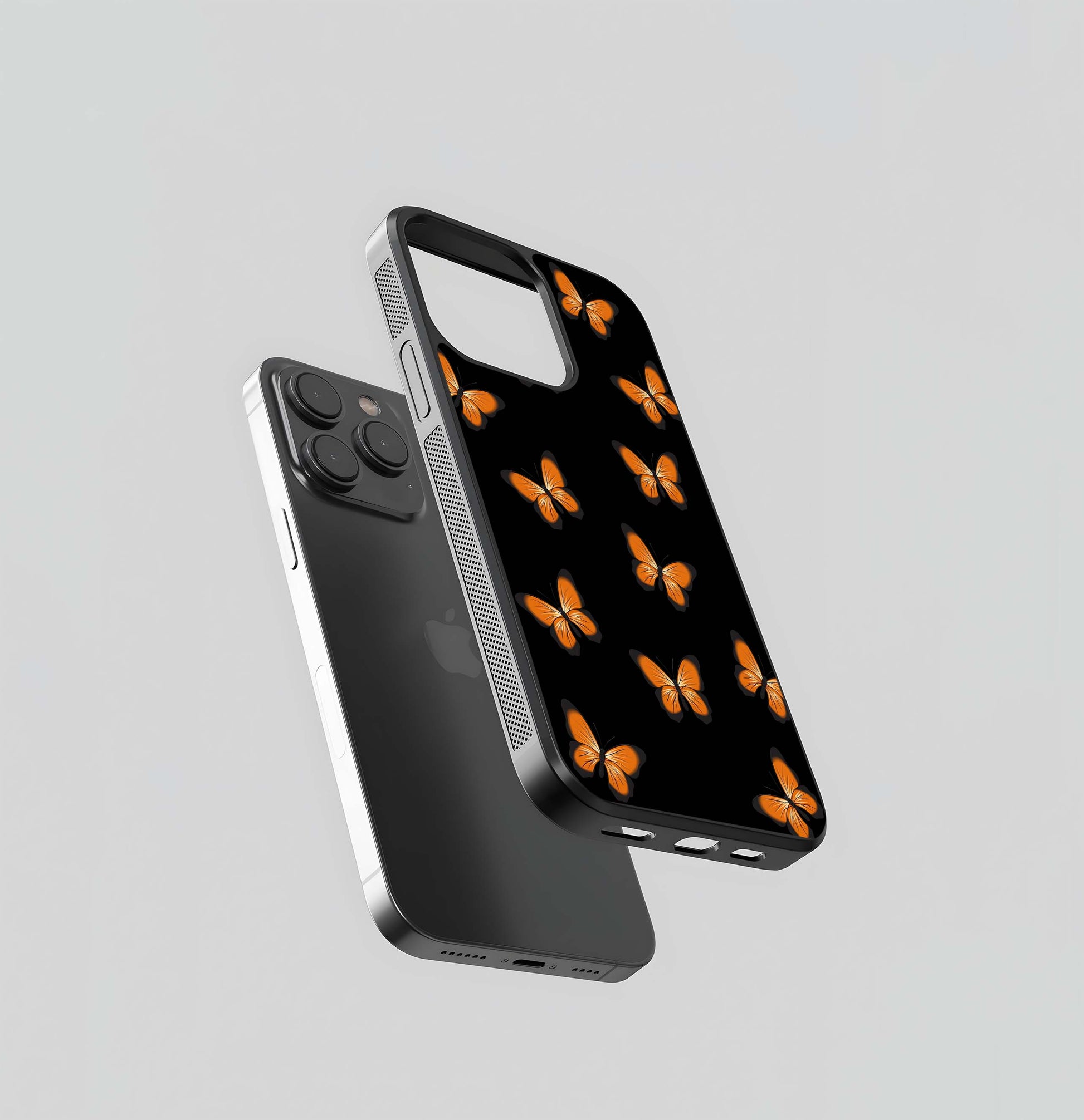 Orange Butterflies on Black Glass Case