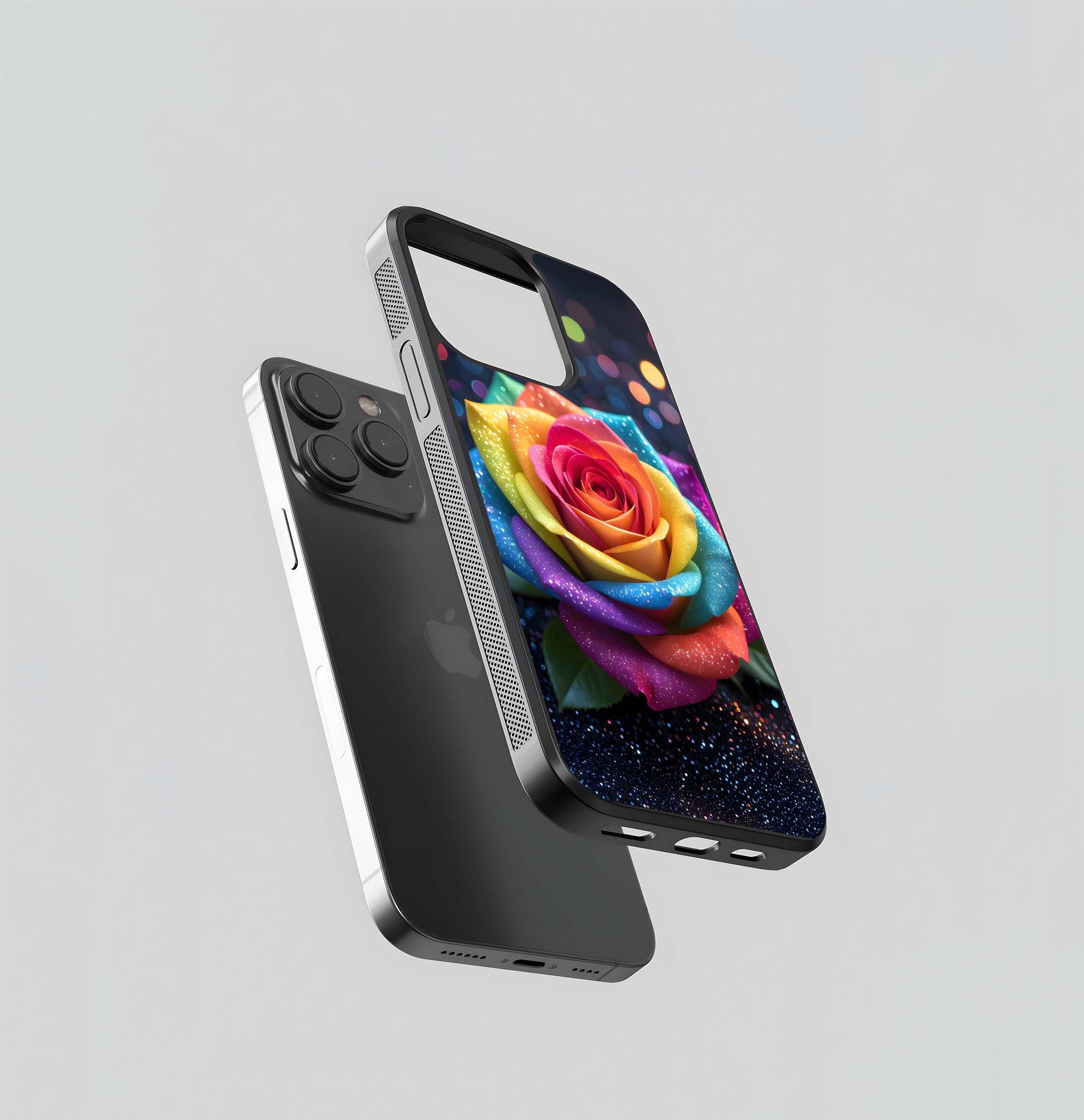 Glitter Rainbow Rose Glass Case
