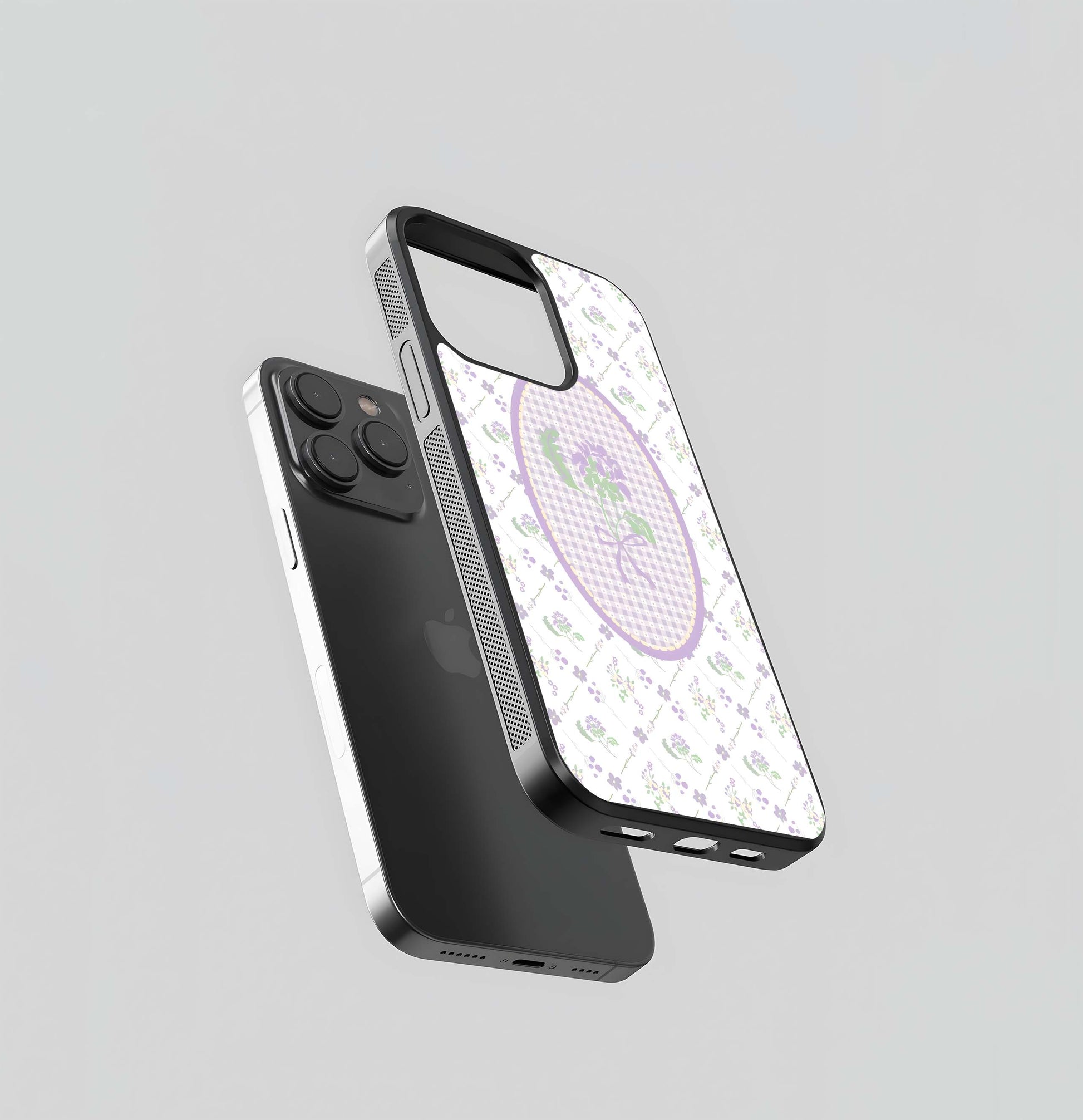Lavender Gingham Floral Pattern Glass Case