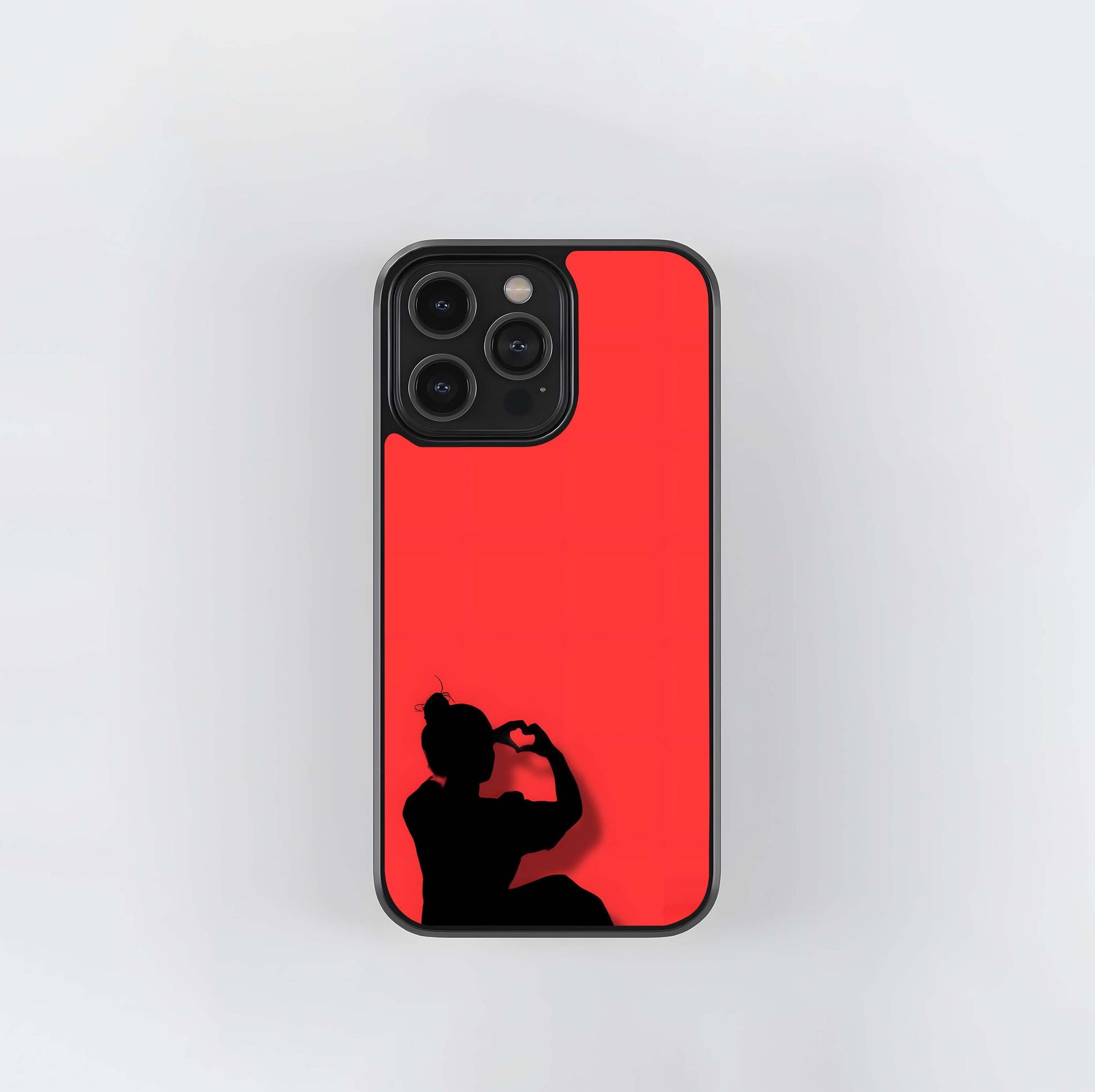 Silhouette Heart Hand Sign on Vibrant Red Glass Case