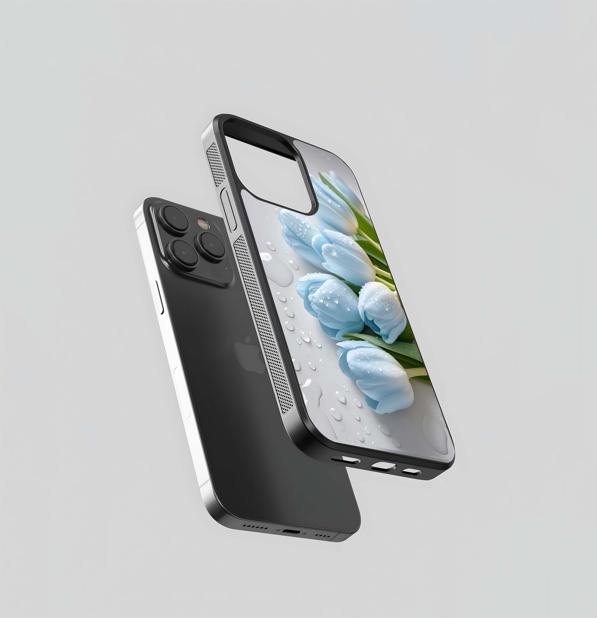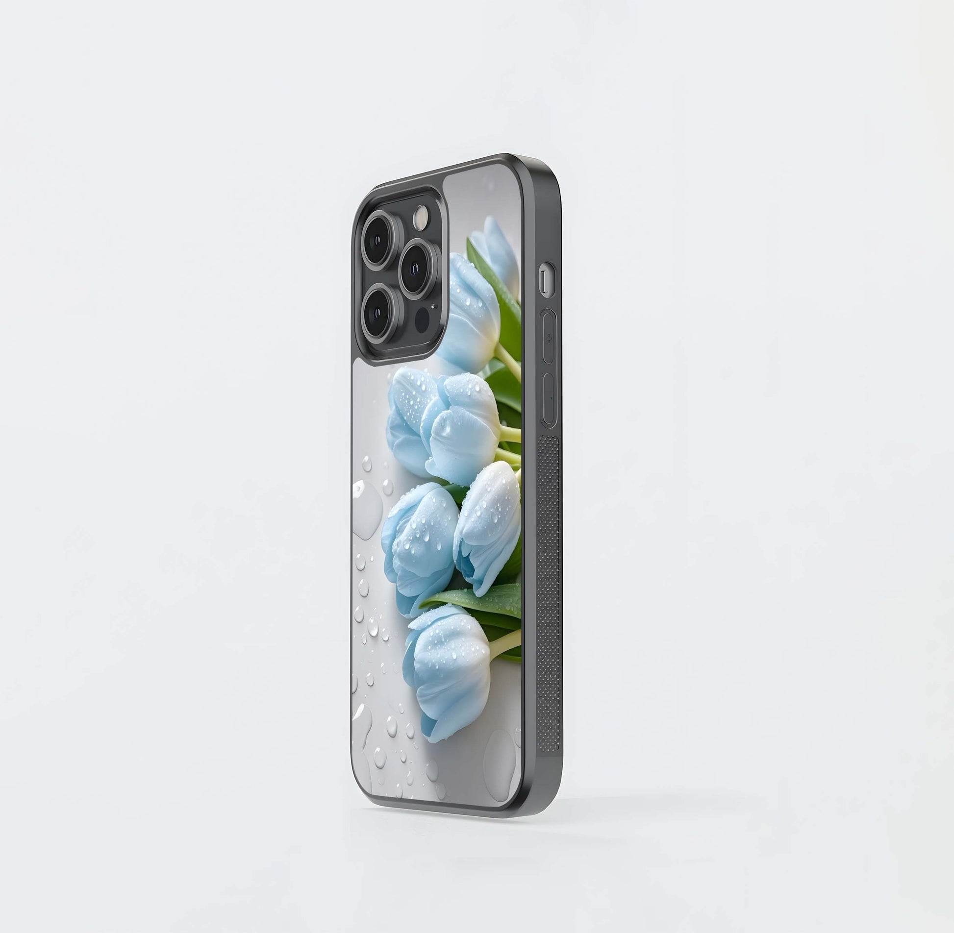 Pastel Blue Tulips with Raindrops Glass Case