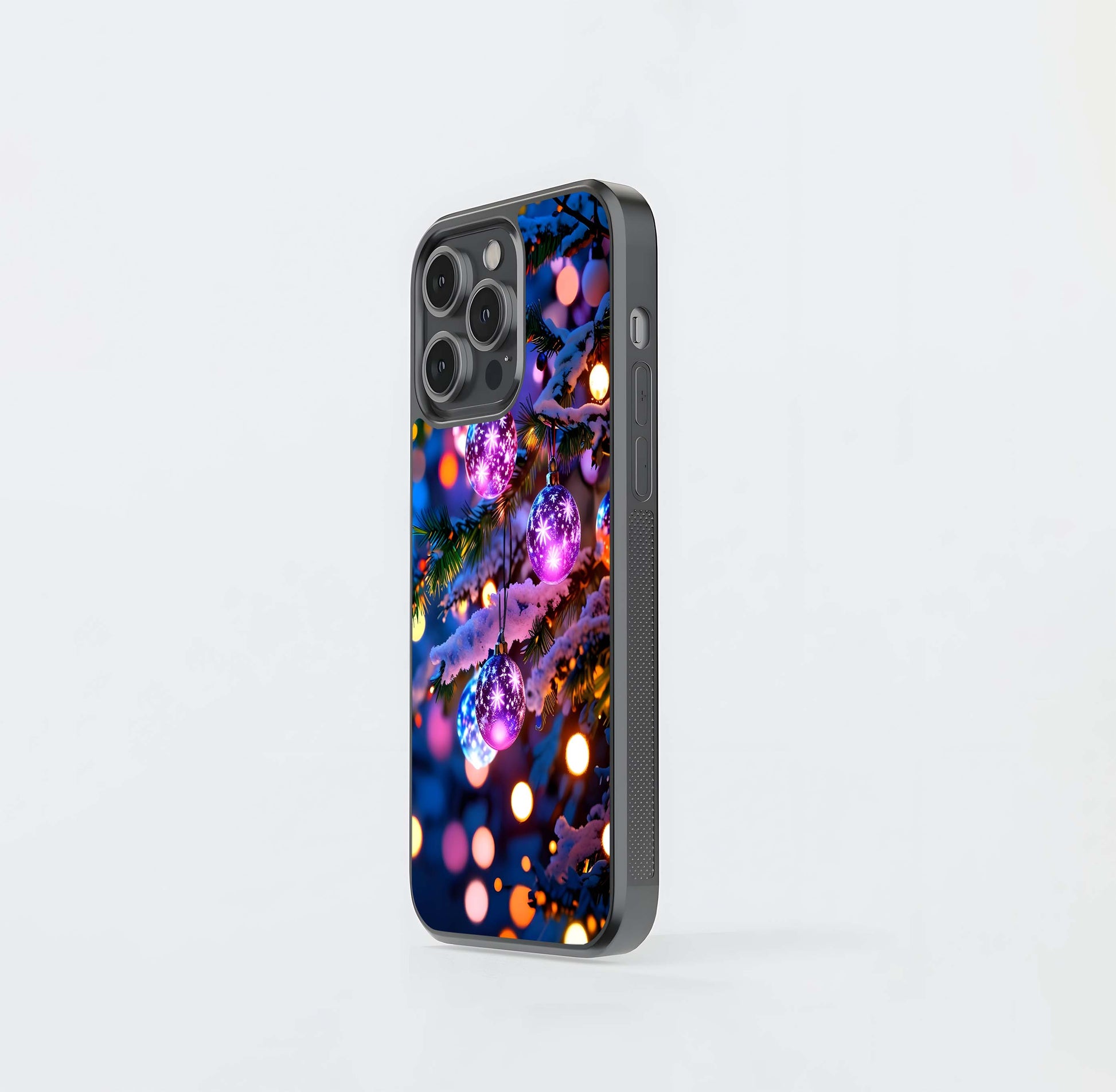 Glowing Purple Christmas Ornaments Glass Case
