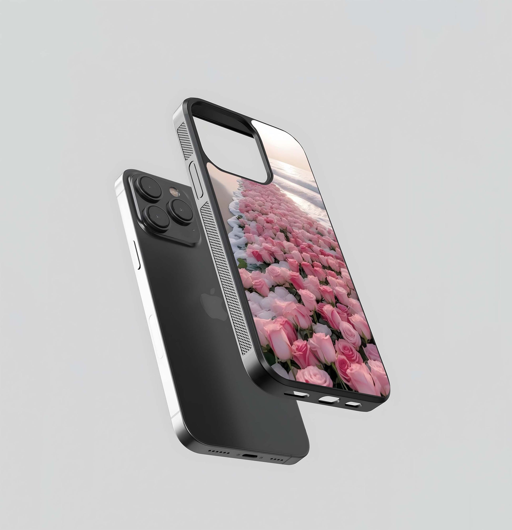 Pink Rose Path on Ocean Shore Glass Case