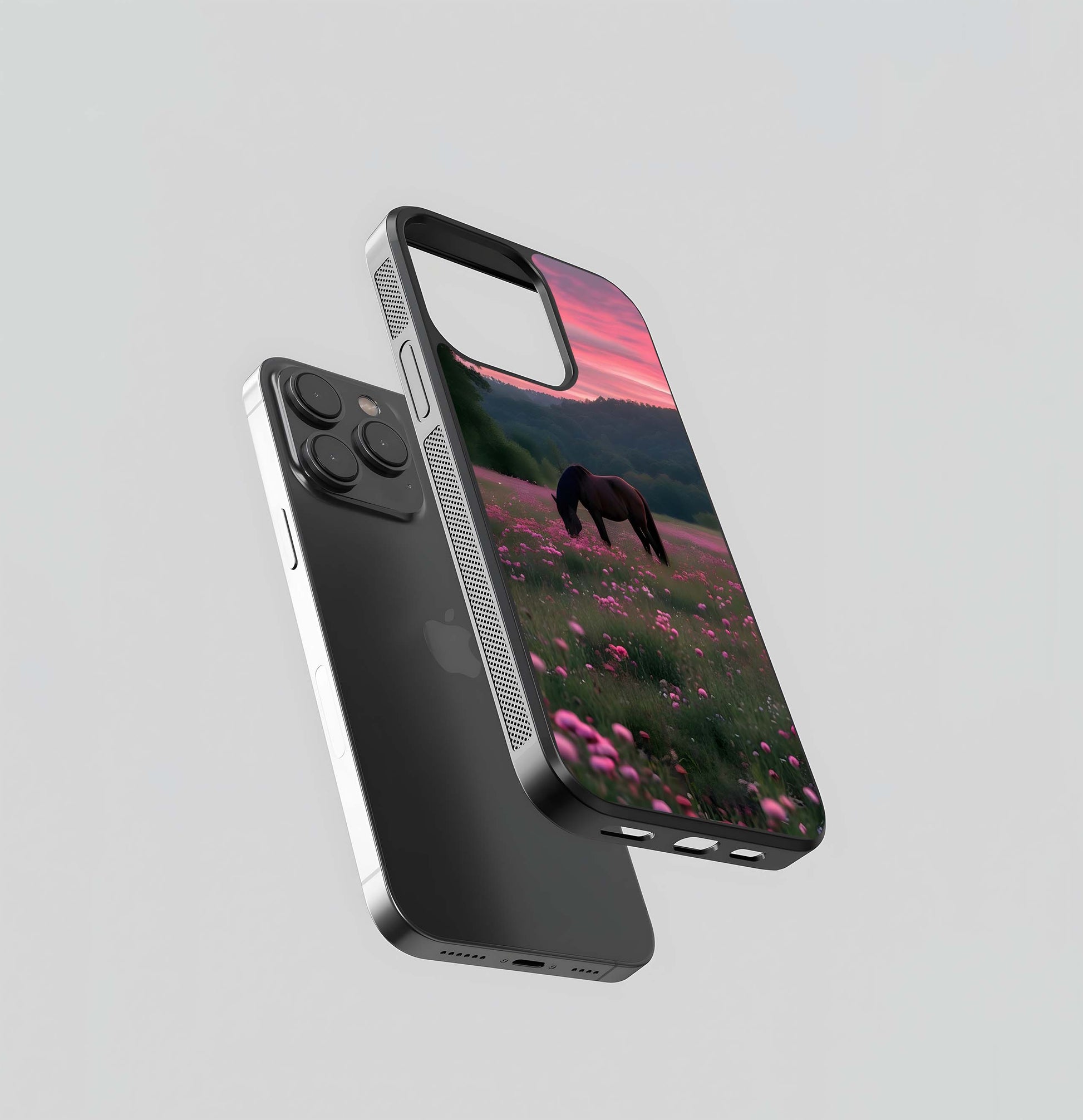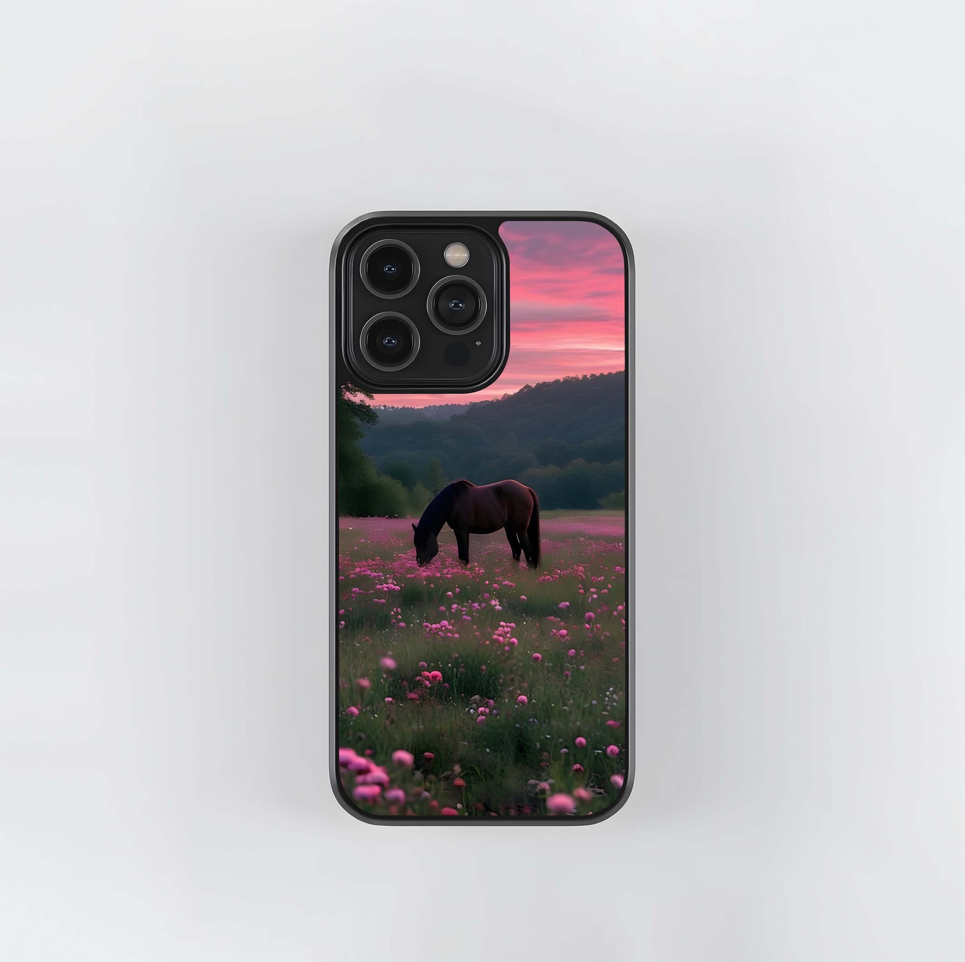 Pink Sunset Horse Meadow Glass Case