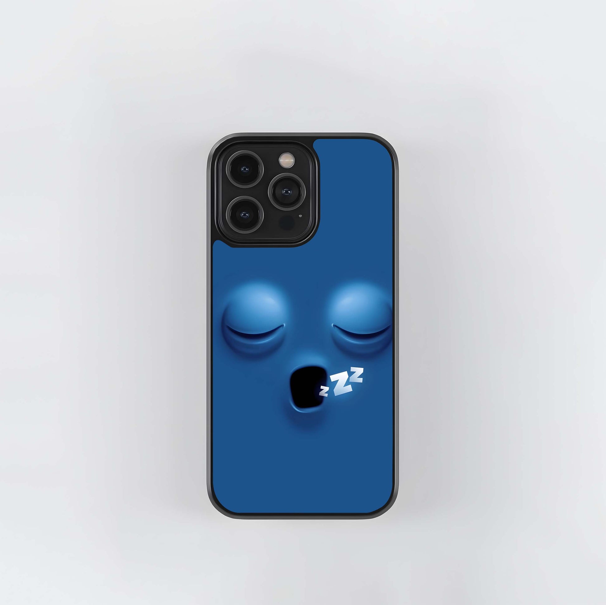 3D Blue Sleeping Face with Zzz Symbol Glass Case