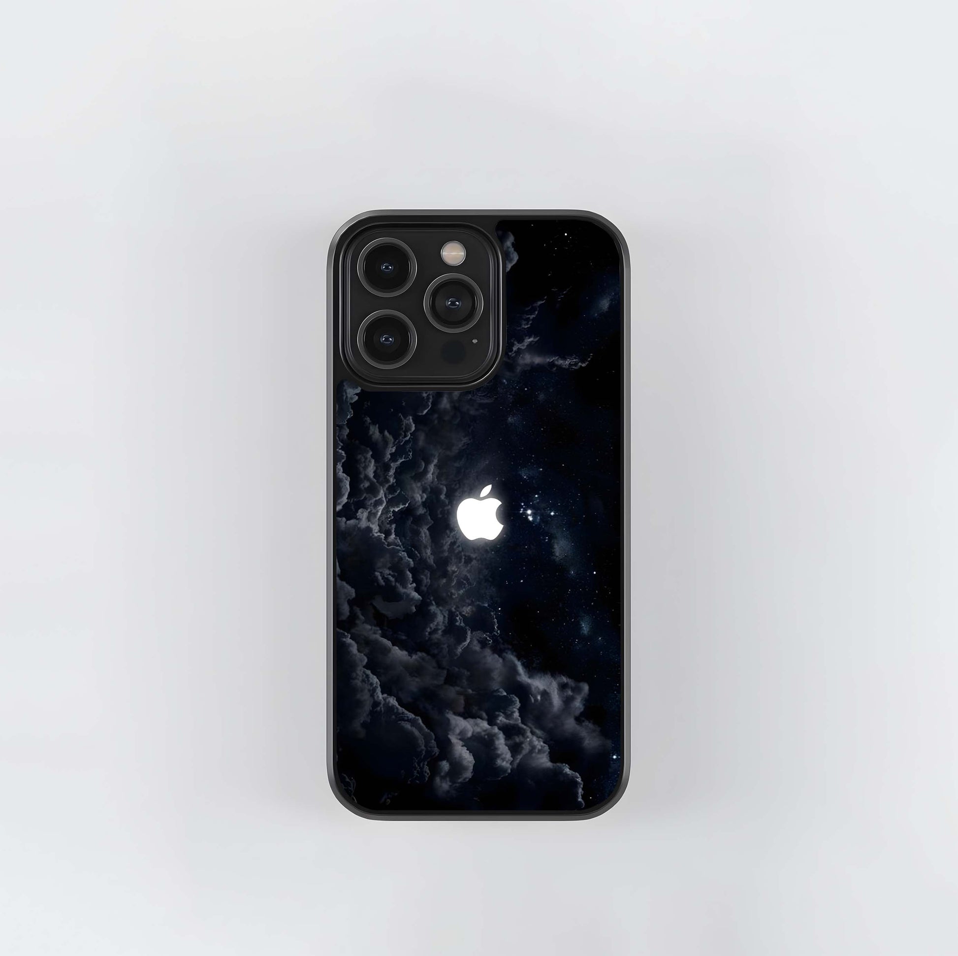 Apple Logo in Space Clouds Glass Case