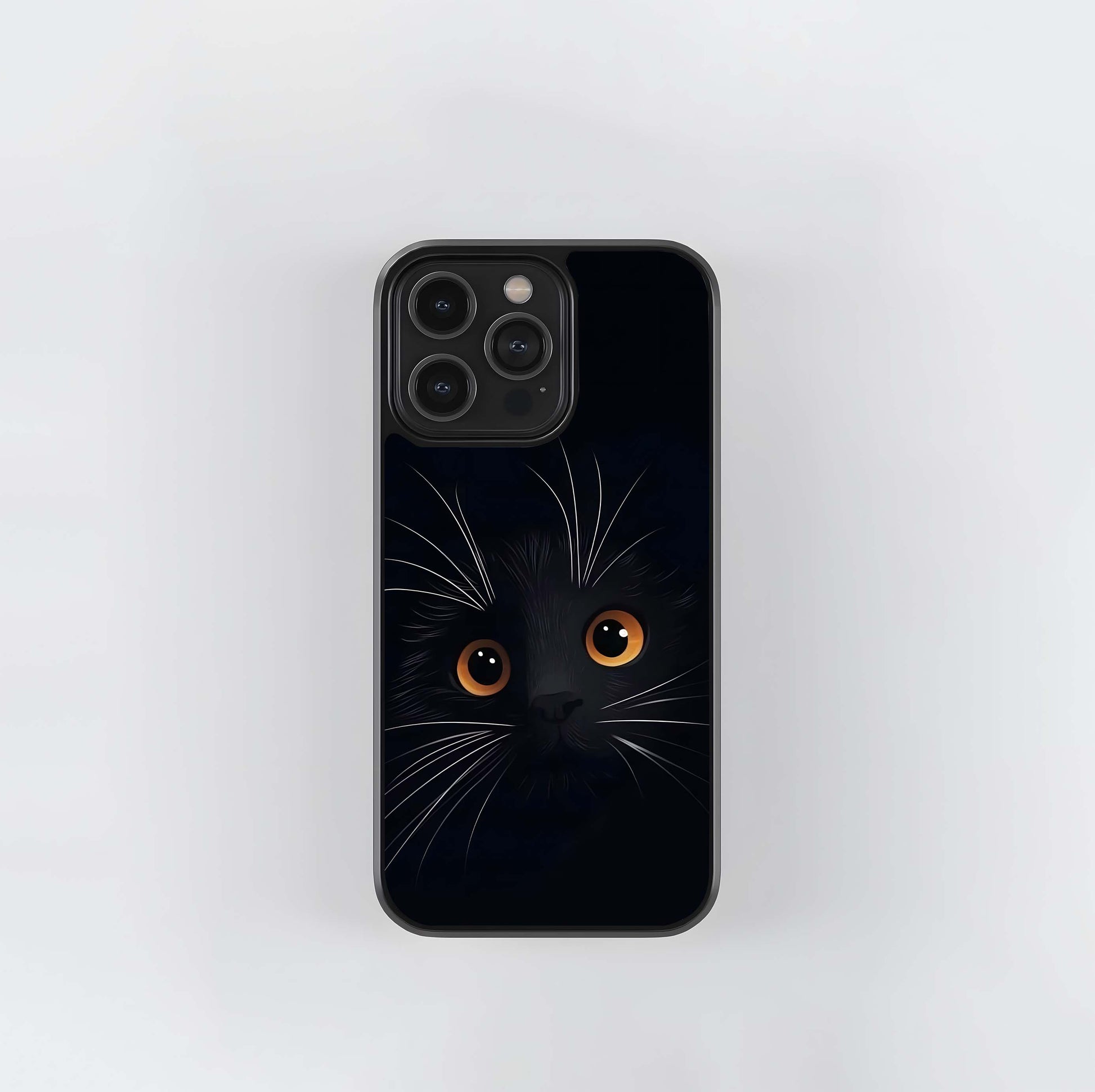 Black Cat Face with Amber Eyes Glass Case