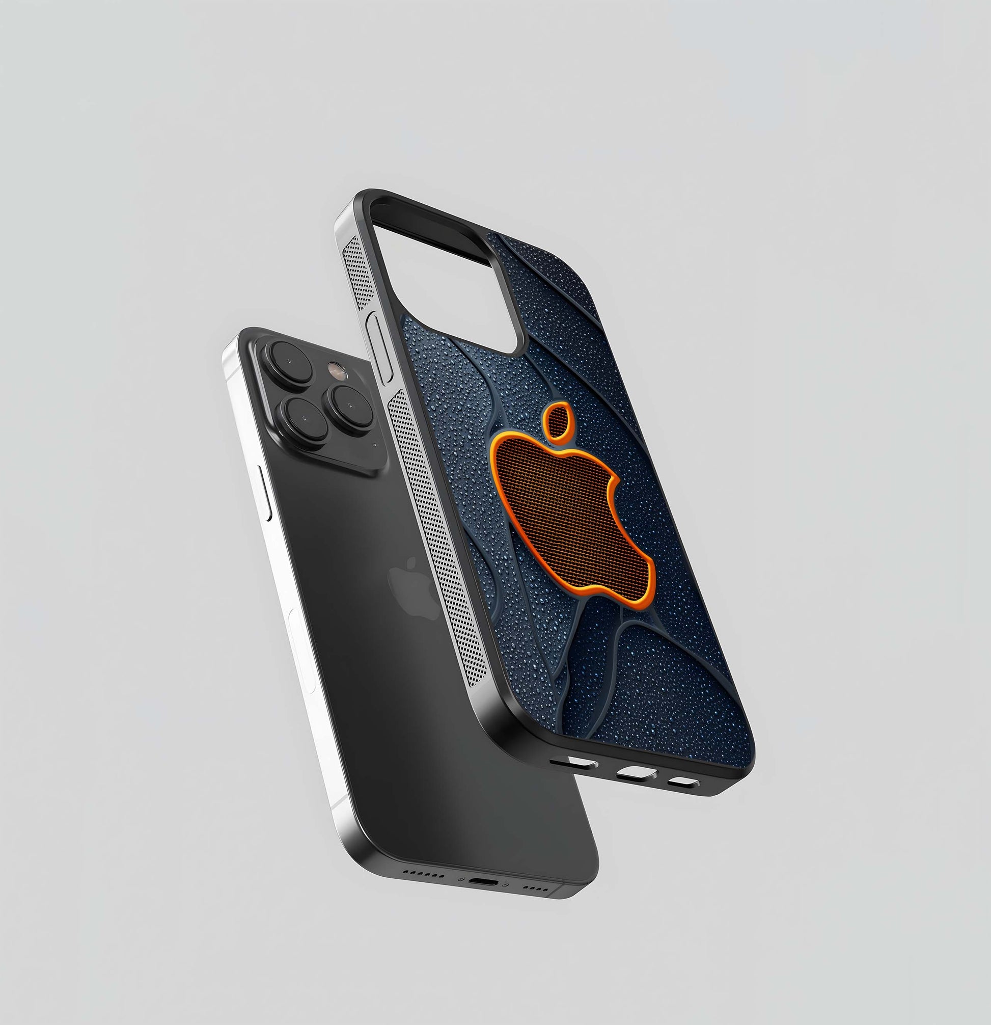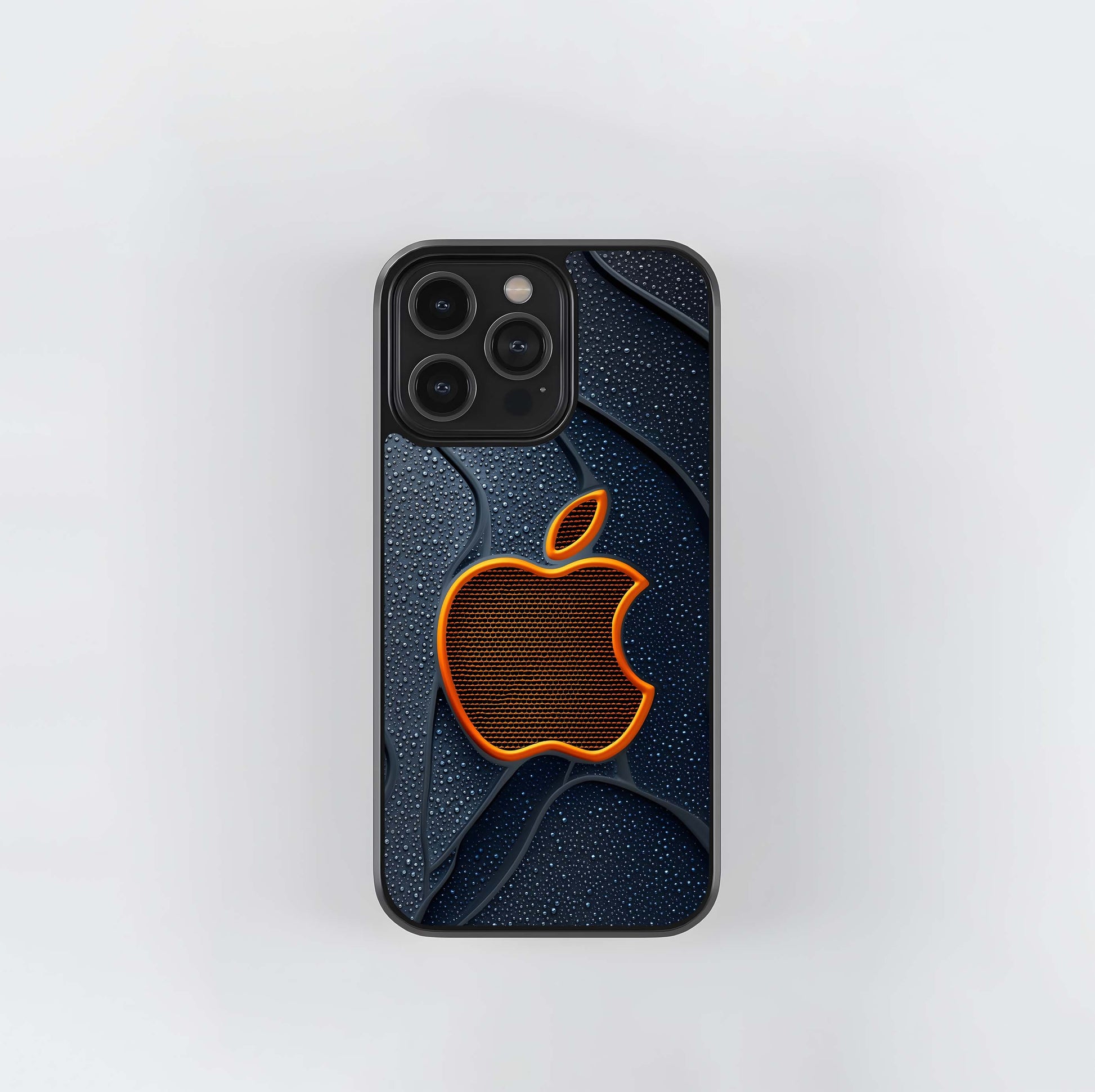 Orange Mesh Apple Grid Glass Case