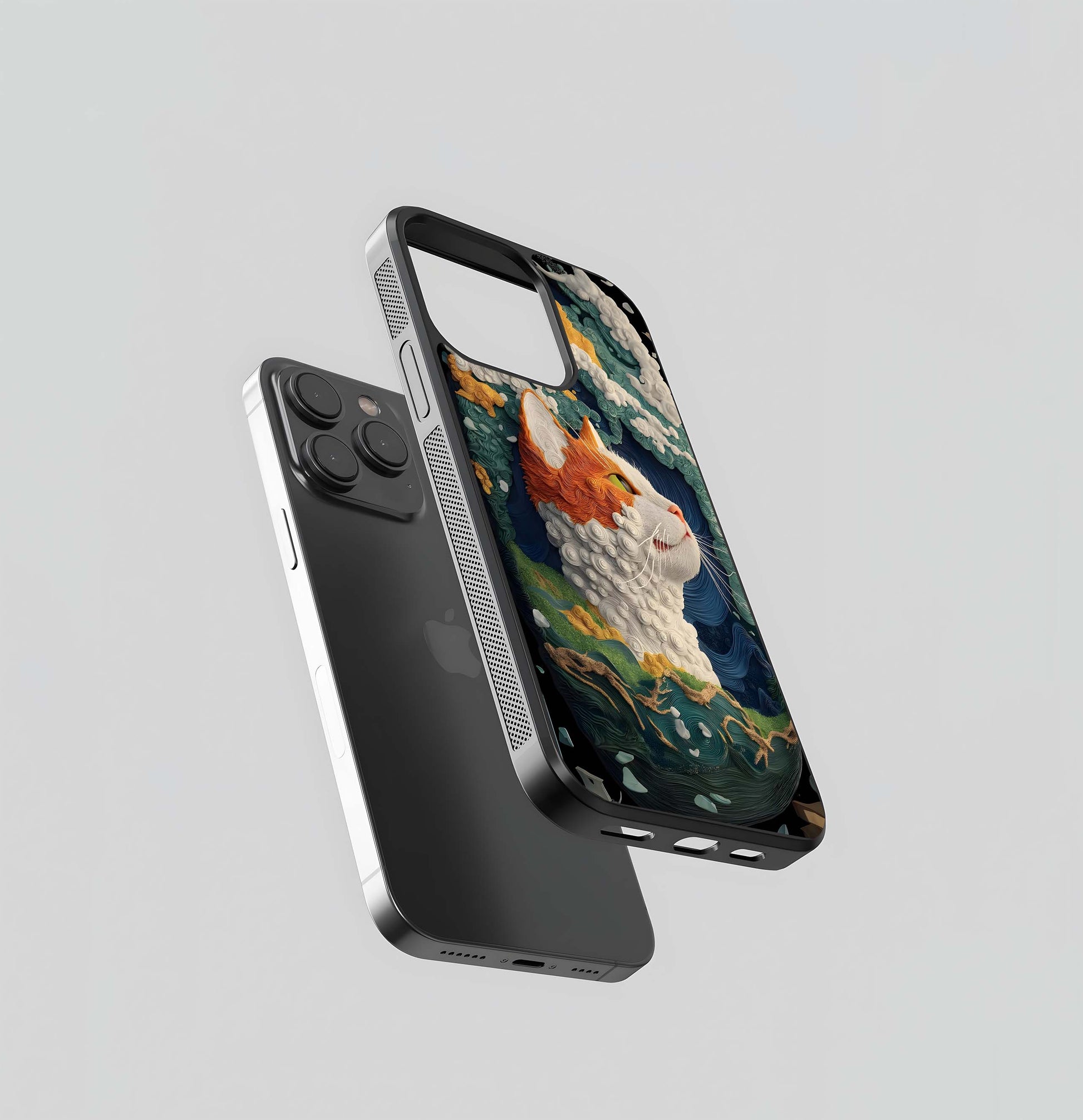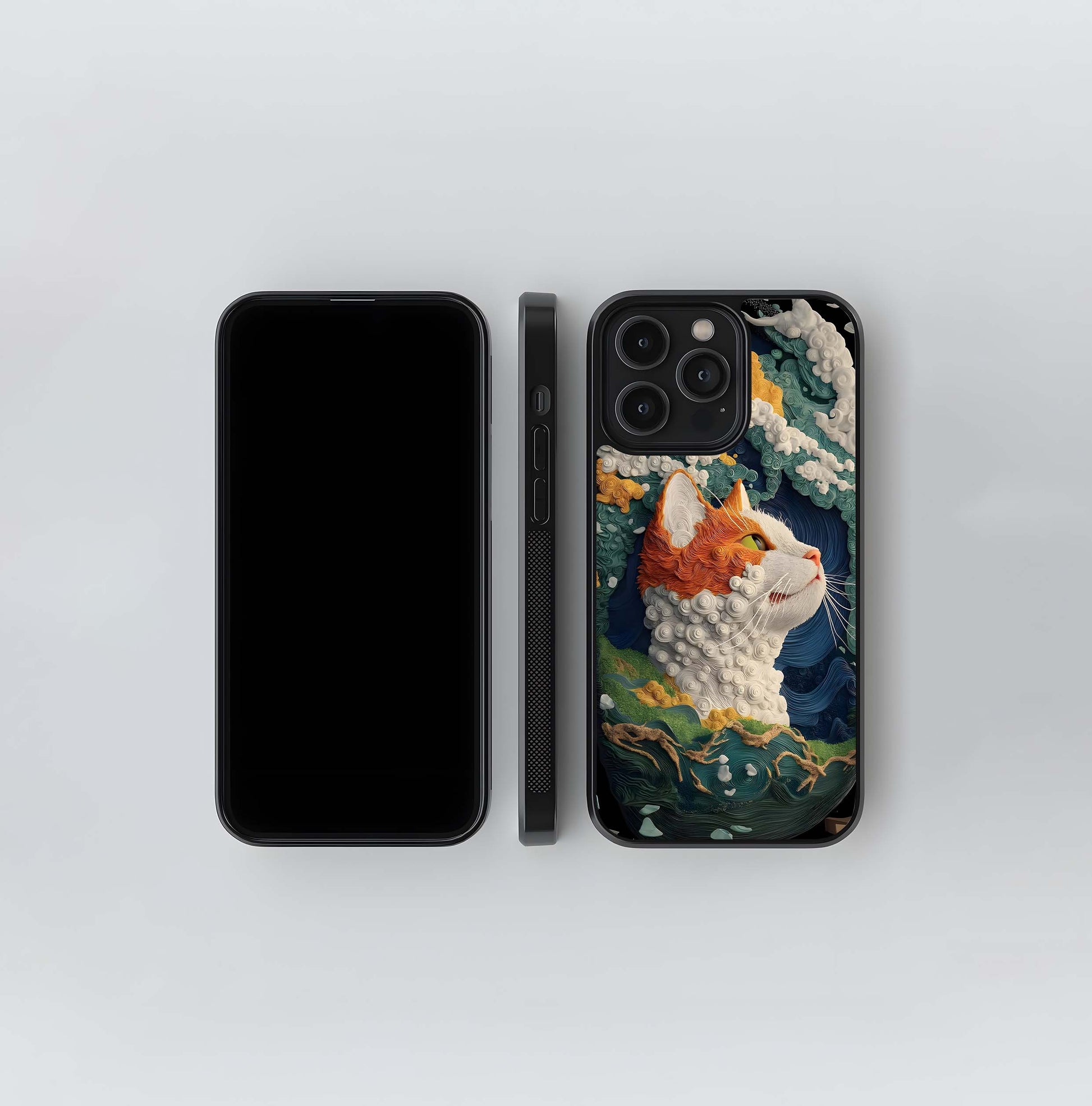 Textured Sea Wave Cat Portrait Glass Case